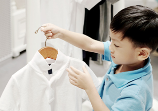 Our suggestion is to start with practical and frequently used words. For instance, when your son or daughter is getting dressed, you can carry out what we call a “name game exercise” by asking him or her to name clothing items through active questioning: “Would you like to wear a T-shirt or a jumper? A skirt or a dress? Boots or sandals? A belt or a pair of suspenders?”