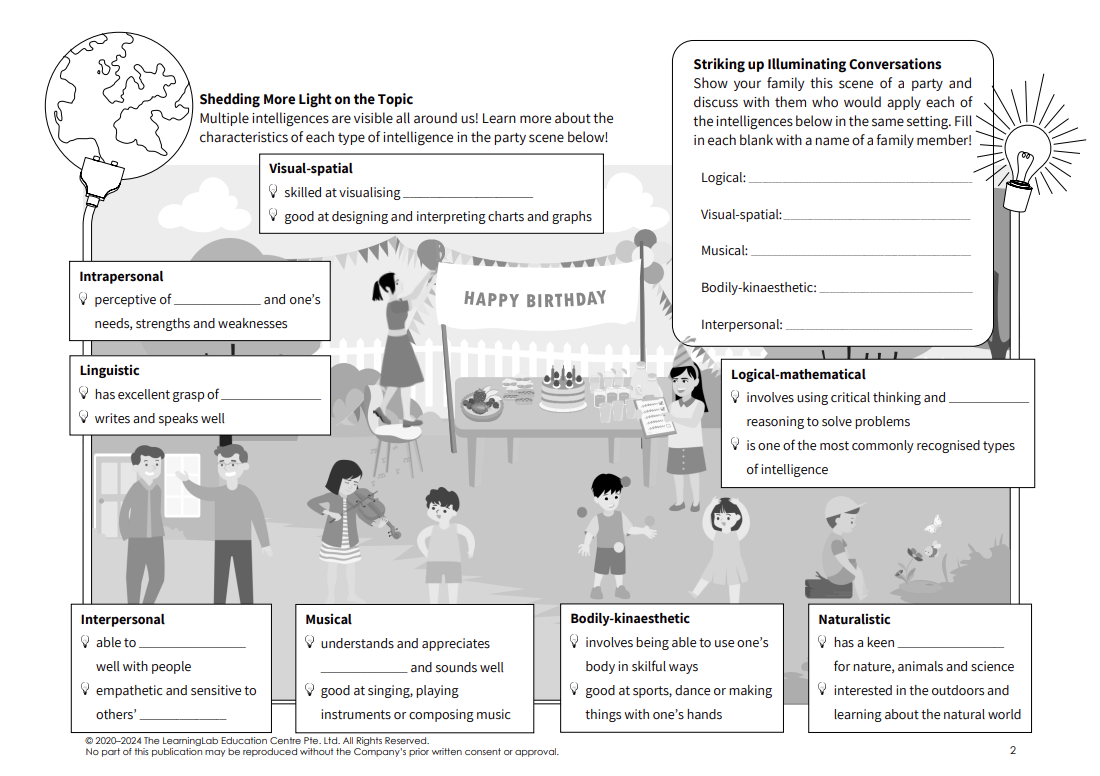 For example, through the Primary School level activity on the topic “Beyond Book Smarts: Discovering Multiple Intelligence,” students can apply their understanding of multiple intelligences in diverse contexts, including exams. A possible oral examination question could be, “What other skills do you think we need to learn besides the subjects learnt in school?” This encourages students to think critically and discuss the practical application of multiple intelligences in their everyday learning and beyond.